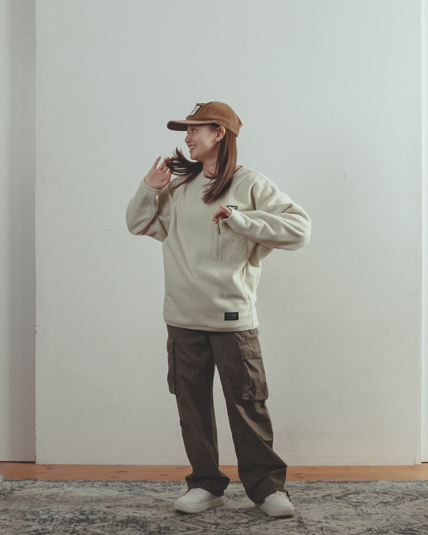 上質な素材がもたらす、シルクのような肌触りと優れた保温性を兼ね備えたフリースプルオーバー。